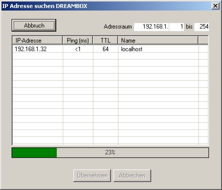 Alle gefundenen IP-Adressen werden im Fenster aufgelistet. Wählt man eine aus und Klickt auf Übernehmen, wird diese Adresse direkt in das korrespondierende Konfigurationsfeld (Box oder Router) übernommen.